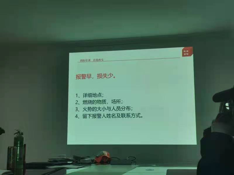 12月22日下午,政安消防再一次派指導(dǎo)老師到我司進(jìn)行消防安全知識(shí)的培訓(xùn)。經(jīng)過之前的幾次培訓(xùn),同事們對(duì)于消防安全已有一定的基礎(chǔ),在培訓(xùn)過程中對(duì)于老師的提問都給予了令人滿意的回應(yīng),受到老師的稱贊。也希望在后續(xù)能有機(jī)會(huì)進(jìn)行實(shí)地演練,讓大家能學(xué)會(huì)運(yùn)用所學(xué)到的知識(shí)而不是只停留在理論層面。